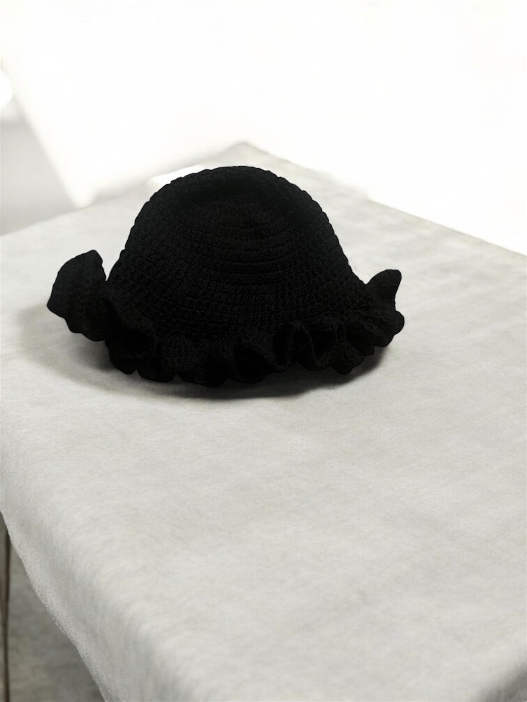 Chic, bold, and effortlessly stylish. The Midnight Ruffle crochet hat is a must-have for any wardrobe. Handcrafted from 100% acrylic yarn, this piece features a dramatic ruffled brim and a deep, elegant black hue that pairs beautifully with any outfit. Whether you’re dressing up for a night out, heading to a cozy café, or adding a touch of flair to your everyday look, this hat delivers comfort and timeless sophistication.